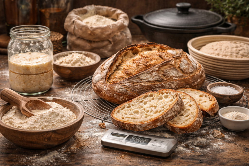 3. Economia Real: Você só precisa de farinha e água. Um quilo de farinha de boa qualidade produz até 3 pães grandes, custando uma fração do preço de um pão artesanal de padaria boutique.
